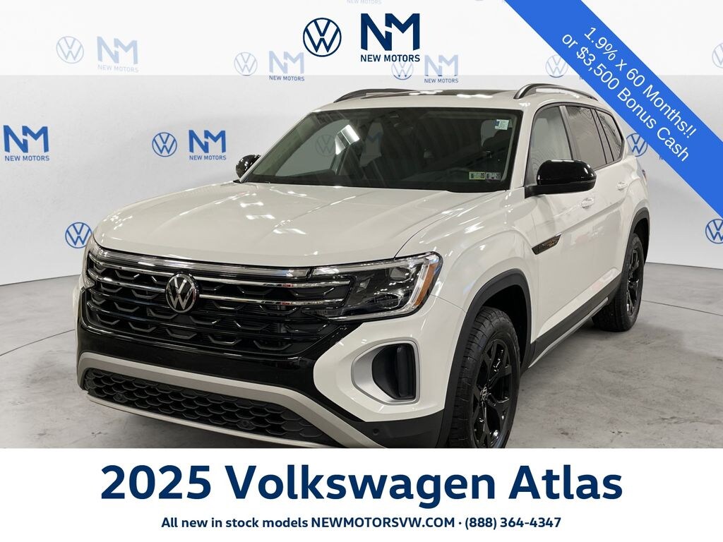 Pure White 2025 Volkswagen Atlas 2.0T Peak Edition 2.0L TSI Price includes: $3500 - Retail Customer Bonus. Exp. 11/03/2025